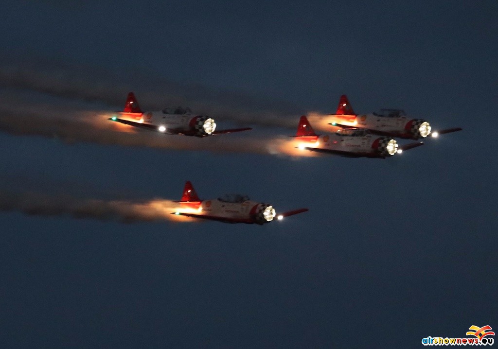 Twice during the week was a stunning ‘nightshow’ culminating in flares, fireworks and pyrotechnics above, below and emanating from, aerobatic aircraft; crowds tend to be denser on those days.