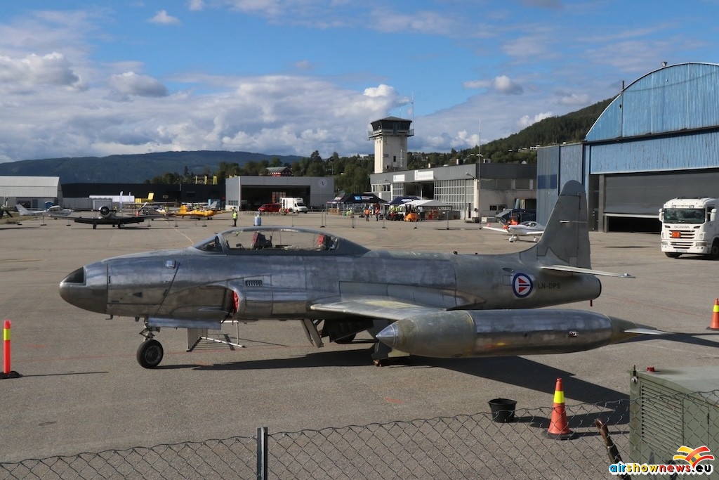 This annual event is hosted at a single runway narrow airfield just west of Notodden, a minor town about two hours west of Oslo. The single hangar and adjacent ramp would hold around two airliners though there are no services. Being held on a single Sunday allows the use of nearby retail park car park areas as only minimal parking is possible on site. What is amazing is the enormous local crowds it attracts with a full flying programme ranging from heritage general aviation to air force heavy metal.